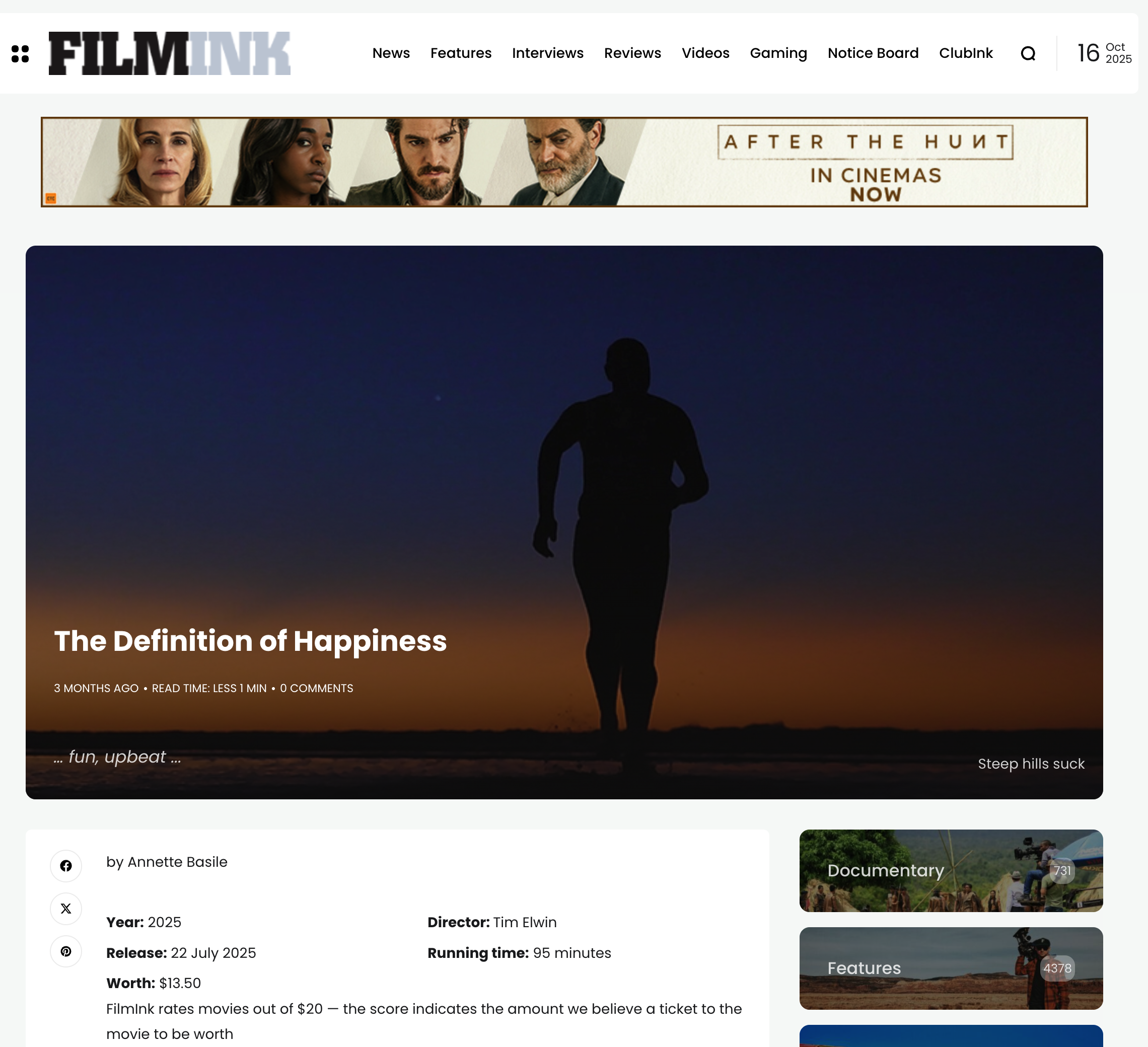 FilmInk’s review of The Definition of Happiness delves into Tim Elwin’s intimate journey across surf, joy and resilience. An insightful critique of his visual storytelling and thematic depth. The Definition Of Happiness is now streaming on Prime Video